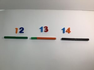 Cuisenaire erregletekin zenbaki bat irudikatuko dugu eta gero aurrekoa eta atzekoarekin gauza bera egingo dute.
